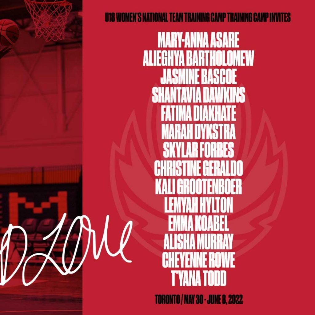 TORONTO, ONT. (May 30, 2022) – Canada Basketball announced Monday the 14 players invited to attend training camp at Humber College from May 30-June 8, 2022 ahead of the FIBA U18 Women’s Americas Championship 2022.