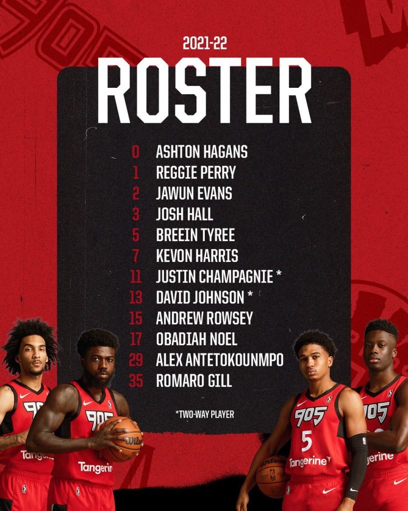 NBA affiliates Alex Antetokounmpo, Ashton Hagans, Josh Hall, and Reggie Perry join the 905 this year, as well as Romaro Gill and Andrew Rowsey, acquired in trades during the offseason. Obadiah Noel completes the roster, earning his spot through the open tryout process. A full roster is below.